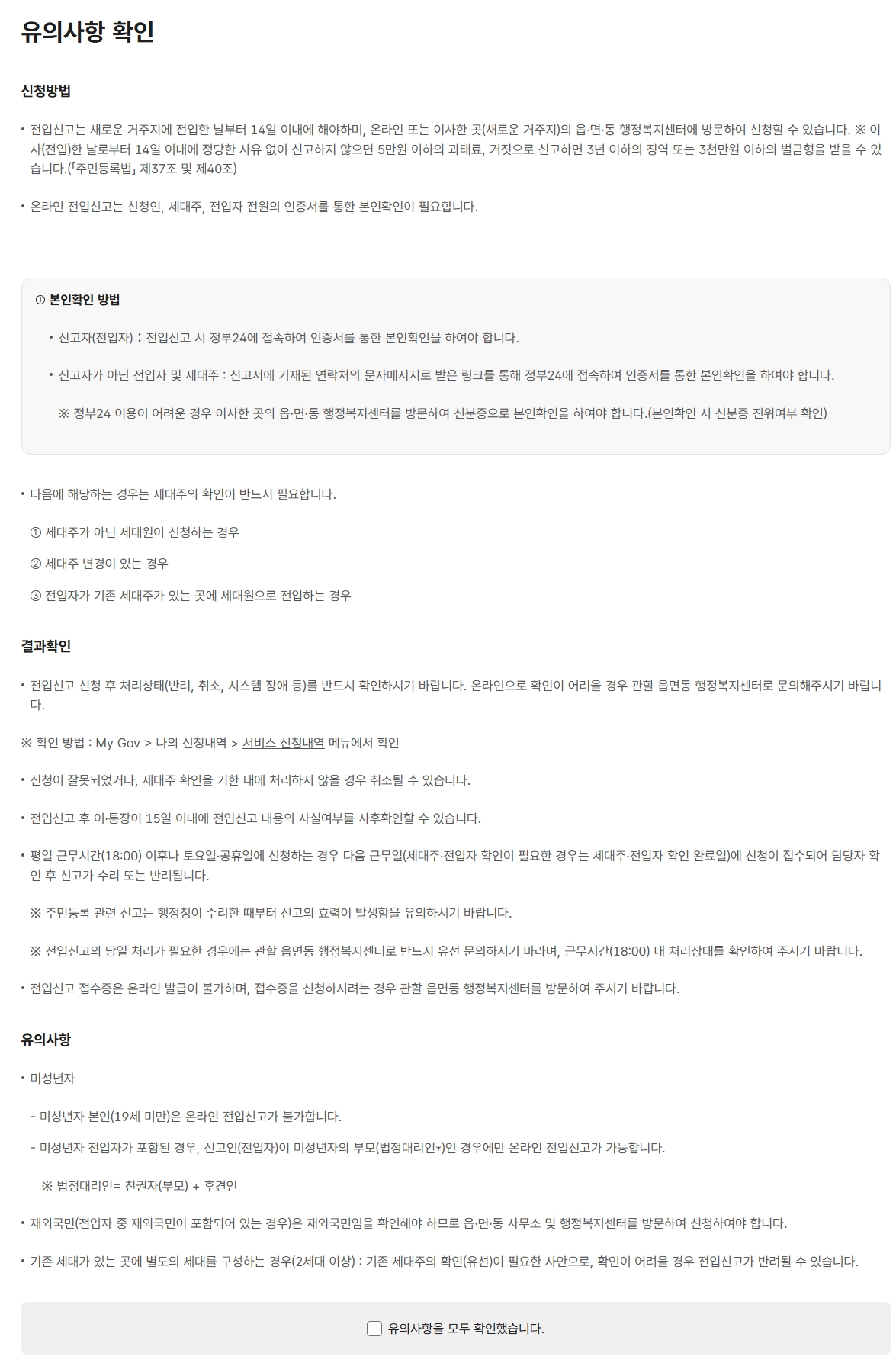 - 가족이 함께 이사했을 경우, 한 명이 모든 세대원 전입신고를 대신할 수 있습니다.